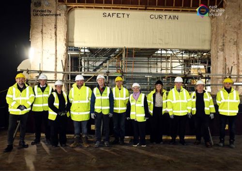 East Ayrshire Council members, joined by local MP Lillian Jones, visited the ongoing £26m redevelopment of the Palace Theatre and Grand Hall Complex in Kilmarnock, celebrating progress on one of East Ayrshire’s most significant cultural regeneration projects. Work has already been carried out internally over the past months to make the site safe, ensuring a secure foundation for the next stages of regeneration.