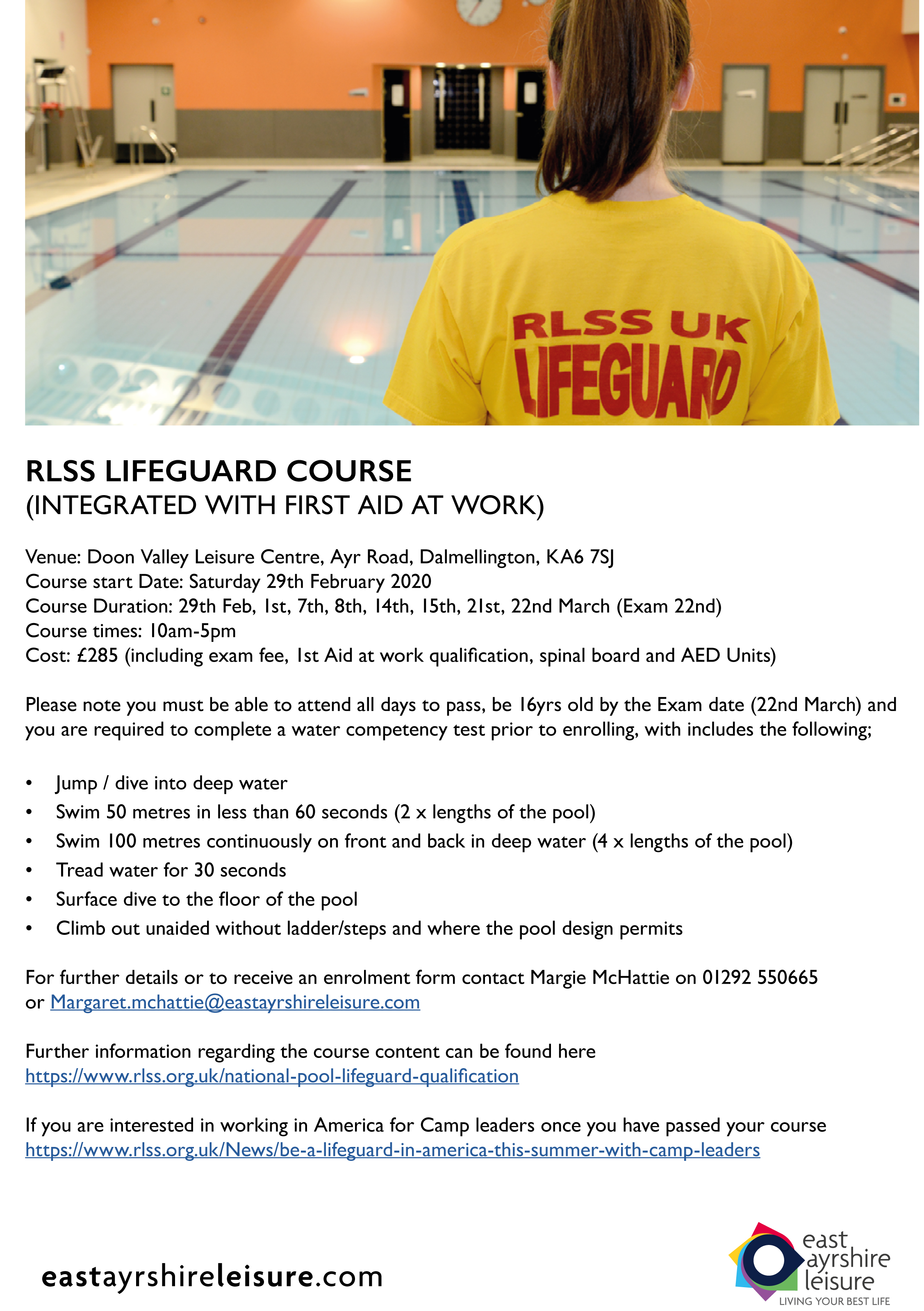 East Ayrshire Leisure manages 2 swimming pools in East Ayrshire - at Loudoun Leisure Centre and Doon Valley Leisure Centre.